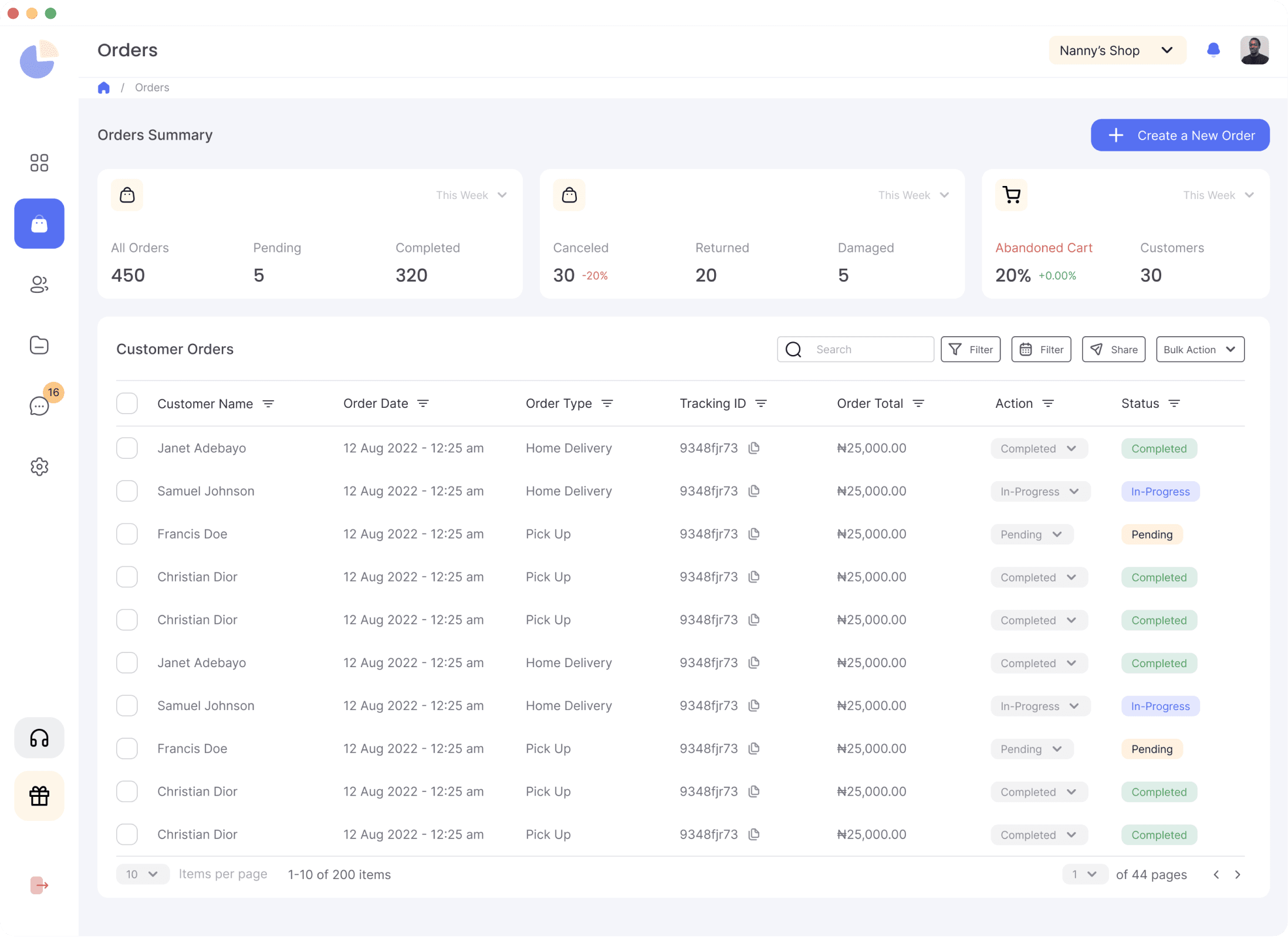 The Orders section was designed with a focus on visual hierarchy, allowing users to see a summary of their sales activities at a glance. Key statistics like total orders, pending, completed, and returned items were immediately visible, with the ability to drill down into more detailed views. This design solution was about giving users a sense of control and oversight without overwhelming them.