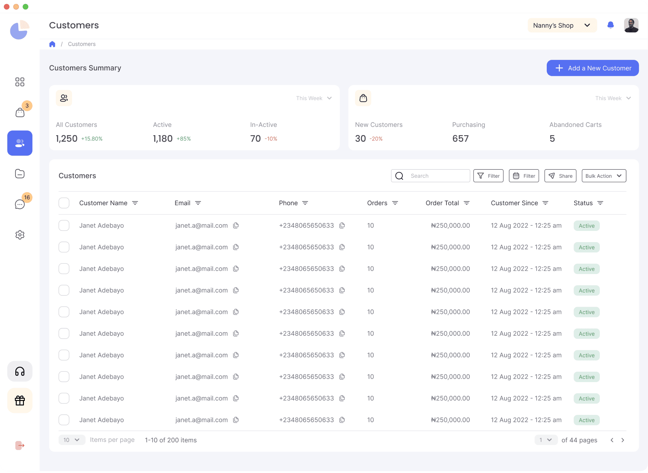 In rethinking the Customers module, the goal was to enable businesses to understand and manage their relationships better. The solution offered a high-level overview of customer activity and health, with the capability to dive deeper into individual customer profiles. It was essential to design a system that felt like a CRM tool built for rapid insight and action.